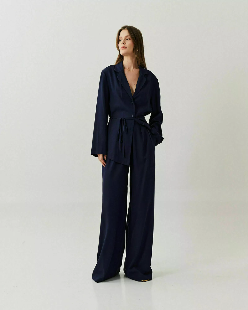 Com modelagem ampla e cintura alta, ela alonga a silhueta e garante conforto o dia todo. Possui fechamento lateral por zíper, mantendo o visual limpo e moderno.
