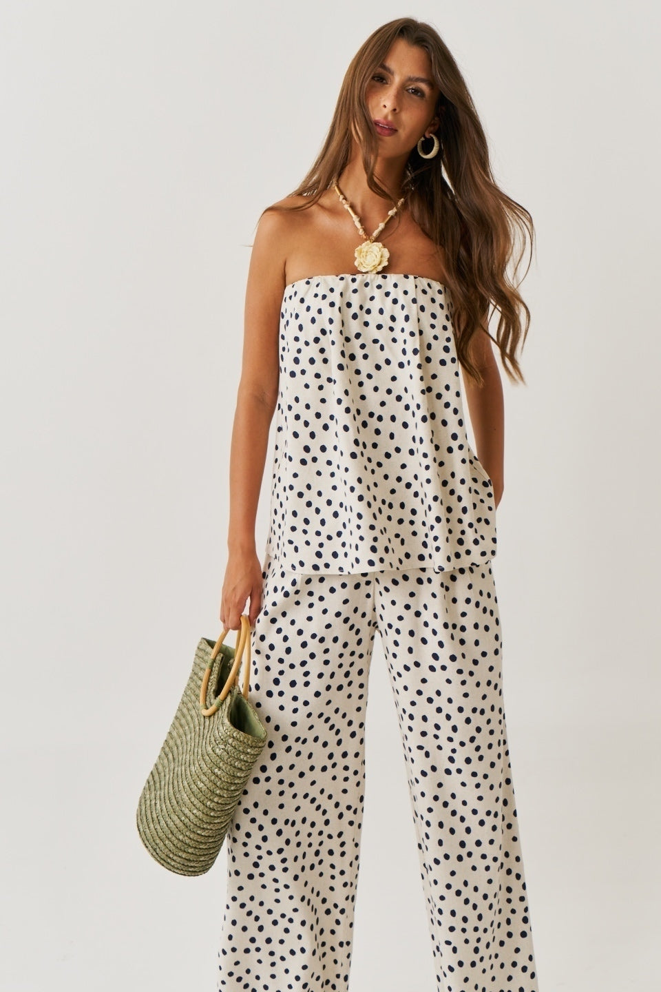 A calça Marjorie é a tradução perfeita do chic despretensioso. O clássico poá volta repaginado, agora em um mix moderno de conforto e sofisticação.