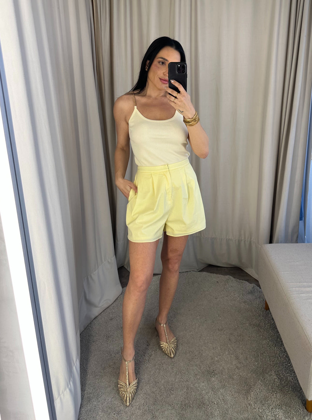 Short em algodão com estética clean e acabamento premium. A modelagem reta traz elegância imediata, enquanto o fechamento frontal com zíper e colchete estruturado garante um visual mais alinhado e sofisticado.